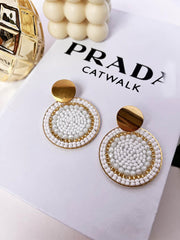 Aros tejidos en mostacilla blanca