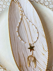 Cadena blanca doble con estrella, alas y corazón