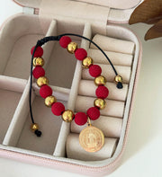 Pulsera en neopreno roja con medalla de San Benito