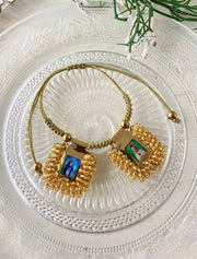 Set de 7 pulseras en cristales dorados y mostacillas